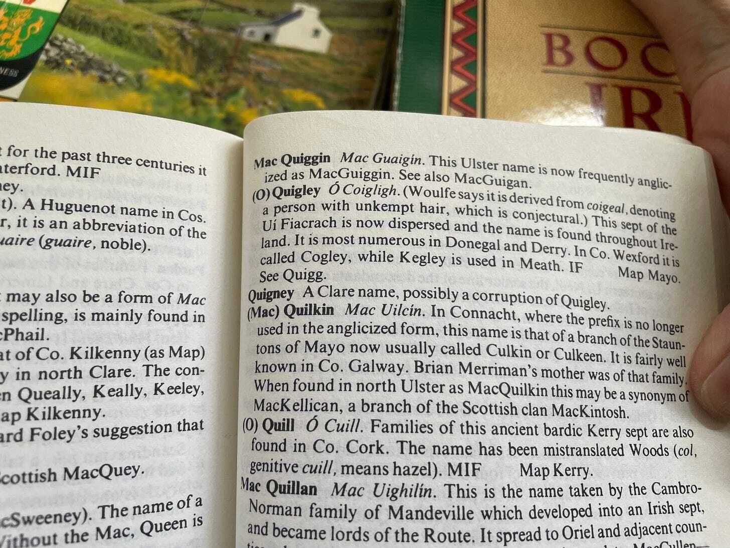 After the show and a stop for beer (of course, one is required when in Milwaukee and at Irish Fest), we made our way over to the playground and to a children’s show M wanted to see. After that, we split up for a bit, with Brooke taking M to get her face painted (she made for a very ferocious-looking tiger) while Craig and I went to peruse the genealogy tent. They had several books of surname origins, and while I knew the origins of my family name Hoey, I wasn’t familiar with where Quigley, my paternal grandmother’s maiden name, came from. Turns out they had both names in one of their books!