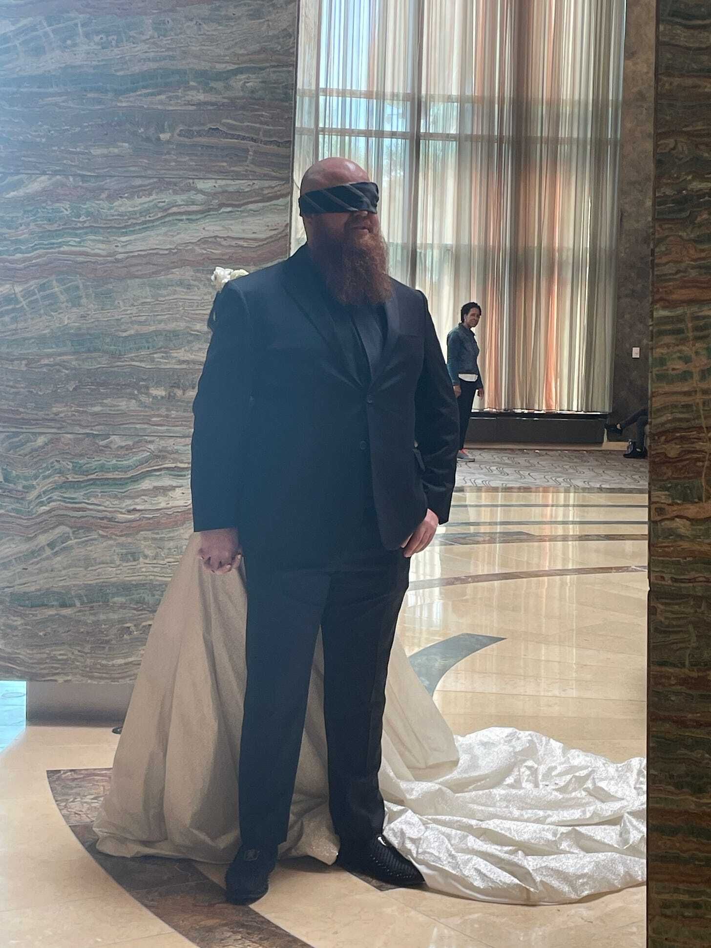 The next day, it was time to get ready. I joined the bridal party for hair and makeup, opting for a low-key natural look (Kiss and Makeup did a fabulous job) and a braid with curls at the end, then suited up and went to join the groom’s party for lunch and some time together before heading to the wedding. Chris gifted us gold ties for the wedding (full disclosure: I needed substantial assistance from the best man to tie mine), personalized pocket cigar holders, and a cigar to put in it and enjoy at the ceremony. Then, it was time to board the bus and head to the state park…and, since there was only one bus for both sides of the wedding, also time to blindfold the groom so he wouldn’t see Tess before first-look photos!